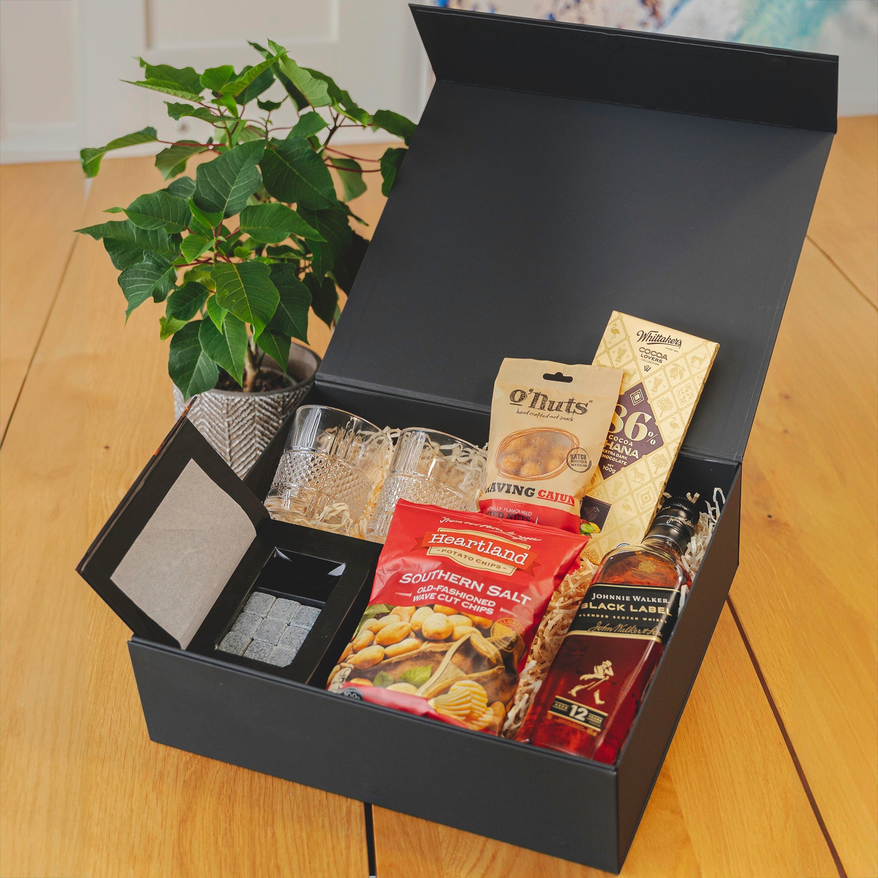 Nestled within this elegant box, you will uncover a 700ml bottle of Jonnie Walker Black Label, known for its smoothness and multifaceted flavors, ensuring an unforgettable sensory journey with every sip. Alongside this exceptional spirit, you'll find two stylish whiskey glasses, expertly designed to enhance the whiskey-drinking experience, guaranteeing that every moment savored is nothing short of remarkable. For added indulgence, enjoy the premium whiskey stones, carefully created to chill your drink without compromising its flavor, preserving the integrity of each nuanced note. Take your tasting experience to a new level with our flavorful selection of Herb and Spice Peanuts, offering the perfect balance of heat and taste to delight the palate.