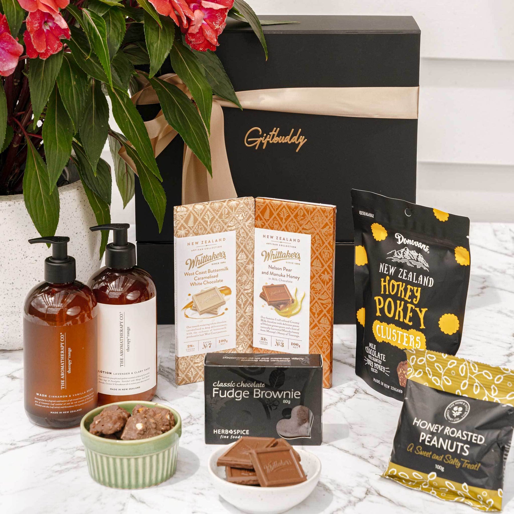 Introducing The Self-Care buddy - the ultimate gift for a moment of pure joy and love! This luxury gift box is packed with self-care essentials such as creams and delicious chocolate, perfect for pampering yourself or a loved one. It's the perfect way to show someone you care. Treat yourself today!