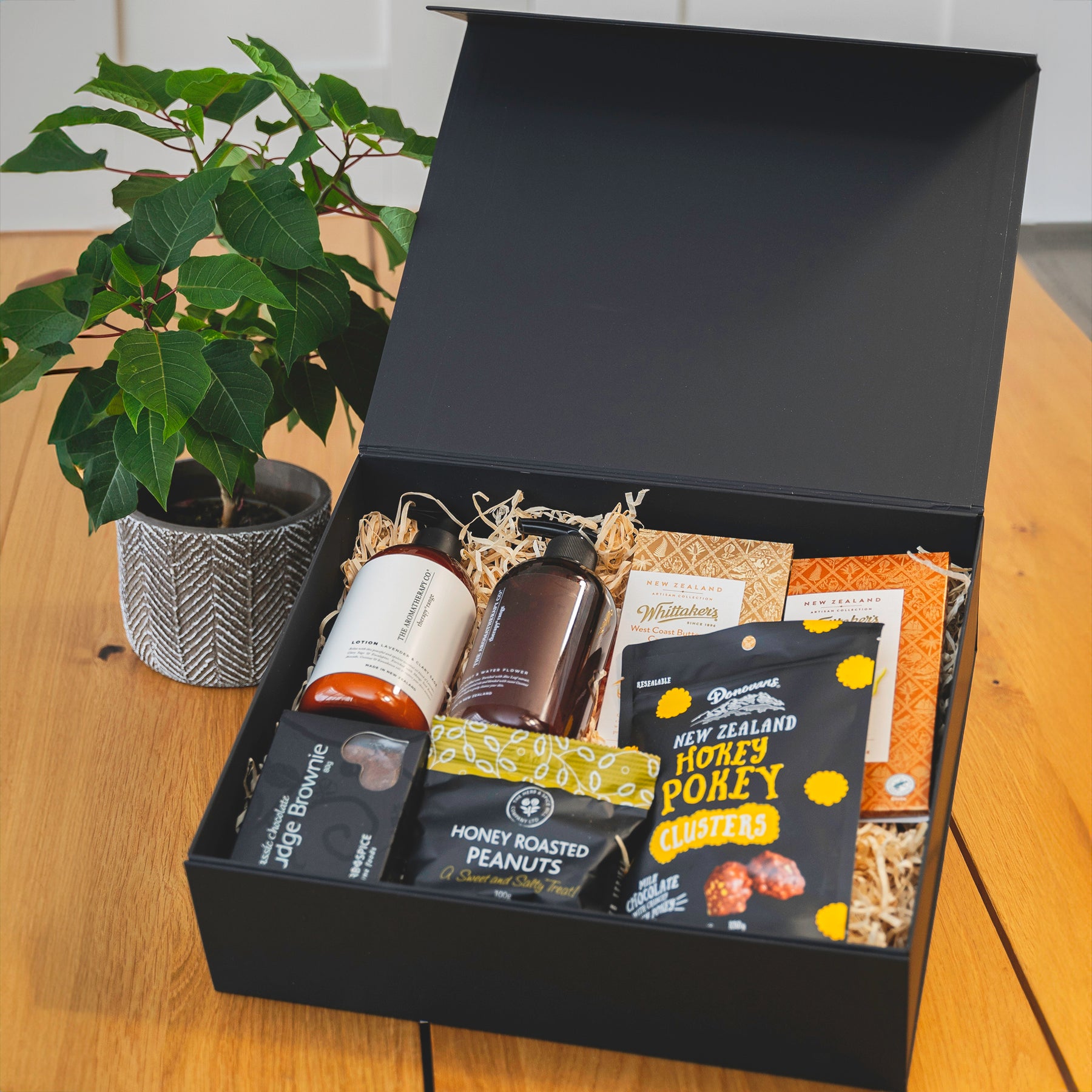 Our products come in our distinctive modern packaging— custom-made black or white gift boxes adorned with elegant ribbons, creating a chic and contemporary gift. No cane baskets or cellophane in sight. When you gift something you’re truly proud of, it’s a special feeling!